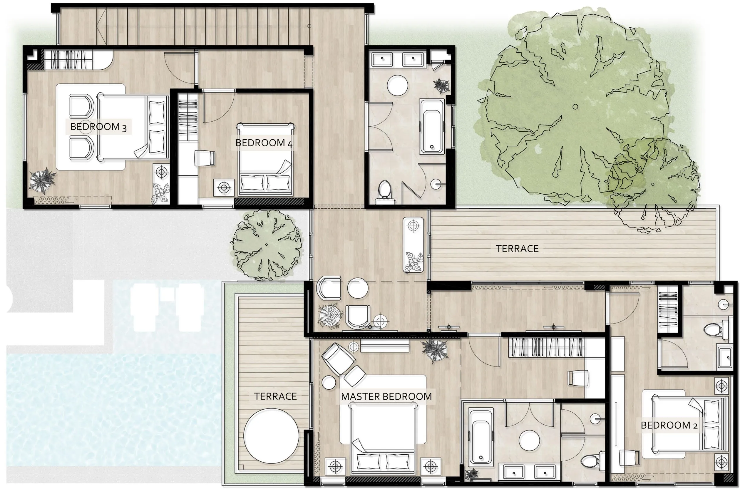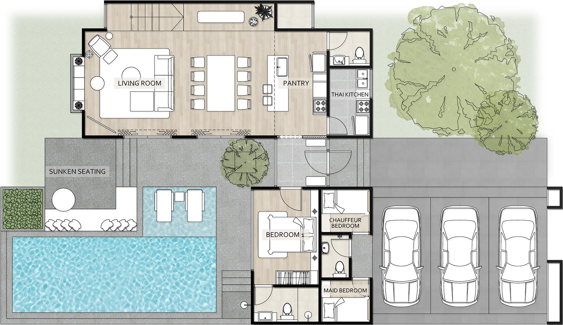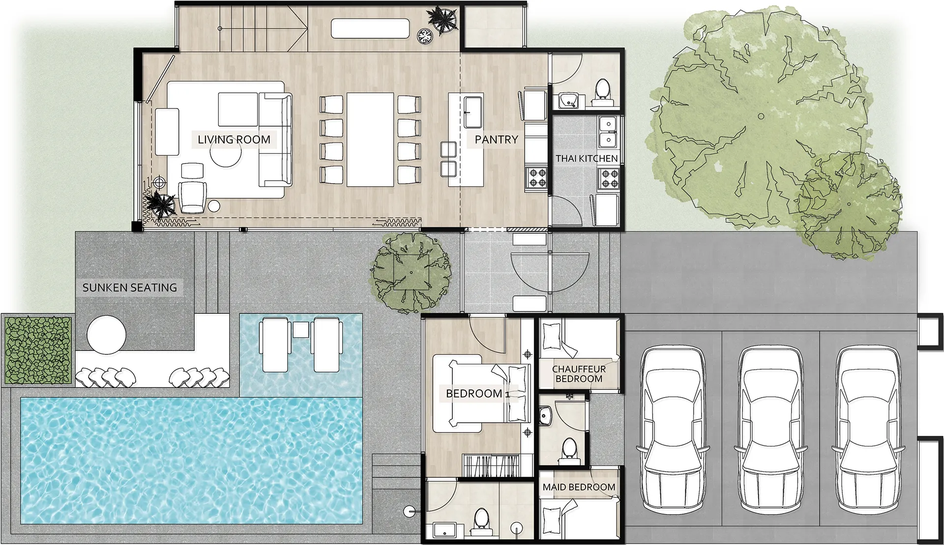 พื้นที่ใช้สอย | 370 – 405 ตร.ม. |